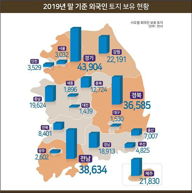 据调查,去年年底韩国国土的0.2%属于外国人。外国人拥有土地面积的增幅在4年后扩大。