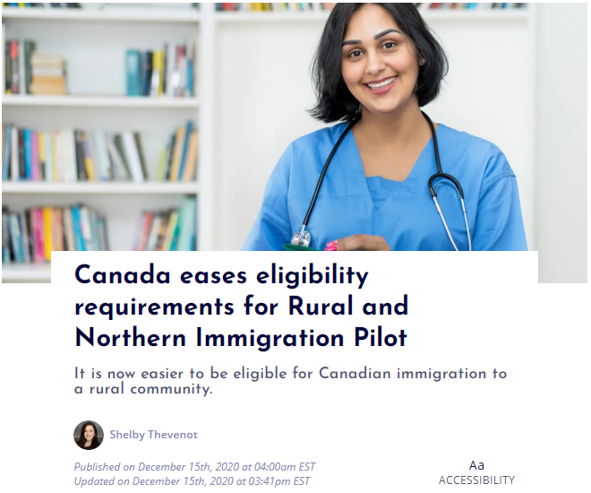 加拿大移民部长马可·门迪奇诺(Marco Mendicino)于12月14日发布了两项有关农村和北部移民试点计划(RNIP)变更的公告。