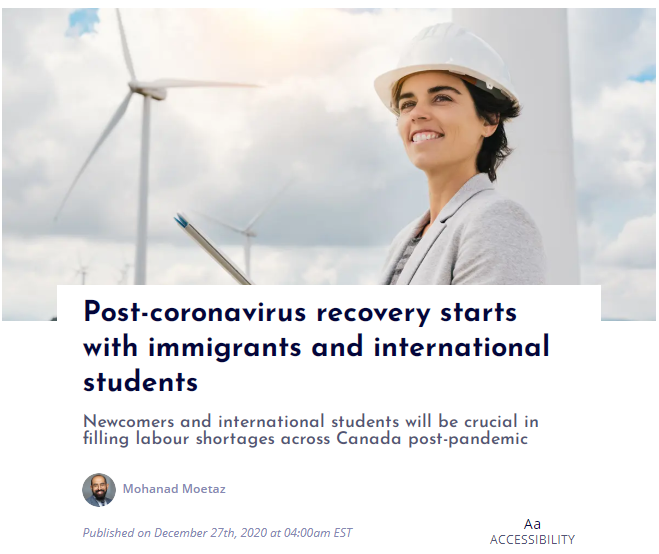 国际学生和新移民对加拿大在COVID-19大流行后的经济复苏至关重要。
