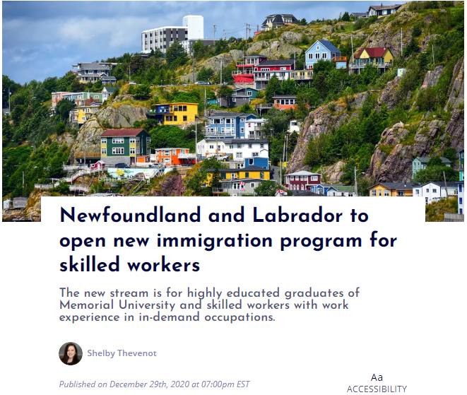 位于加拿大东海岸的纽芬兰和拉布拉多省将于1月2日开始接受新移民项目的申请。该新移民项目为优先技能项目,旨在吸引和留住当地劳动力紧缺行业的专业经验的高教育、高技能人才,例如技术和海洋科学类专业人才。